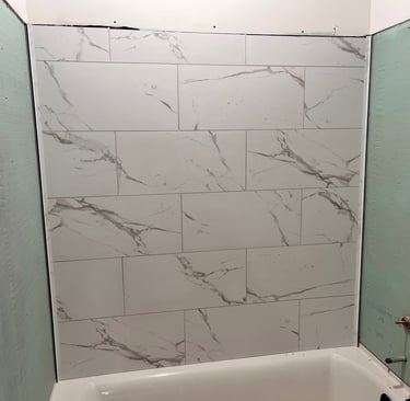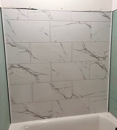 After tackling the girls' bathroom, we decided to make it a beautiful and functional space. We ventured to a local hardware store, where we found two stunning vanities that perfectly complemented our vision. For the tub, we chose a stylish option from Lowe's, ensuring both comfort and elegance. To elevate the overall aesthetic, we selected Palasade Carrara Marble Tile for the walls, a material I absolutely adore. Not only does this marble exude timeless beauty, but it is also easy to install and completely waterproof, making it perfect for a bathroom setting. With these choices, we are confident that the new bathroom will be both practical and inviting for the girls. Click here to see how to install Palisade Tile.