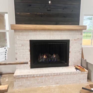 After deciding to enhance our living space, my husband and I transformed our gas fireplace area with a stunning brick layout. We hired skilled bricklayers to beautifully surround the fireplace with new bricks, creating an inviting focal point in our home. To add an extra touch of elegance, we opted for a raised hearth, also crafted from matching bricks, which not only complements the fireplace but also provides a practical seating area. For the remaining part of the fireplace, reaching all the way to the ceiling, we took on the challenge ourselves by installing tongue and groove boards and stained them black. This choice adds a rustic charm and texture, making the fireplace a true centerpiece of comfort and style in our living room. The combination of brick and wood has brought warmth and character to the space, making it perfect for cozy gatherings.