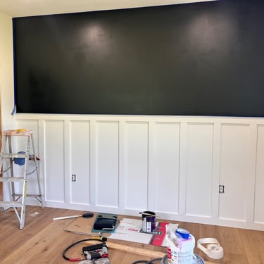 We next moved on to the exciting task of painting. Most of our home was brought to life with Sherwin Williams Snowbound, creating a bright and airy feel. For the baseboards, I chose Sherwin Williams Pure White, which nicely complemented the walls. In my daughter’s room, I opted for a soft yet stylish Sherwin Williams Repose Gray, giving it a serene atmosphere. My oldest daughter had a specific vision, so we transformed one of her walls into a beautiful half board and batten design, with the upper portion painted a bold Tricorn black from Sherwin William.