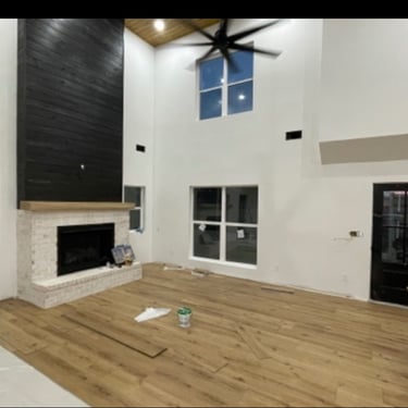 Next step was selecting the flooring. After extensive research, I chose LVP CoreTec Cairo Oak for its durability and aesthetic appeal. Once our order arrived we eagerly prepared for the installation. We did lay a moisture barrier on the bottom layer of our house on top of the concrete and a noise barrier layer for the upstairs. We faced the challenge of laying over 2,300 square feet of flooring, a daunting task at first, but fortunately, the CoreTec planks were designed for easy installation. This allowed us to tackle the entire project ourselves without needing professional help. We felt a great sense of accomplishment as we transformed our space, enjoying both the process and the final result of our hard work.