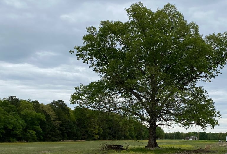 I can remember when my husband would always point out this massive oak trees in the middle of fields when we would pass by them. He often expressed his dreams about the perfect home, stating, "Wouldn't it be awesome to have that land with a tree in the front of our house? After nearly 15 years of dreaming, my husband and I finally turned his vision into a reality. We sold our previous home and with excitement, we purchased 12 acres. There it stood: the large oak tree he had always envisioned. This new chapter in our lives fulfilled his dream and brought us hope, resilience, and a deep sense of peace in our forever home.